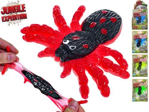 Jungle Expedition pavouk 7 cm strečový lepivý - mix barev (zelená, žlutá, červená, modrá)