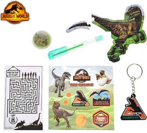 S ada aktivit s motivem Jurského světa je vhodná pro každého malého milovníka dinosaurů. Sada obsahuje: hopík, labyrint, puzzle, nálepky, klíčenku a gelové pero Vhodné pro děti od 5 let.