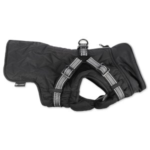 integrovaný postroj s reflexními proužky, prošívaný voděodolný materiál, příjemná fleecová podšívka, pohodlné zapínání na hřbetě psa.