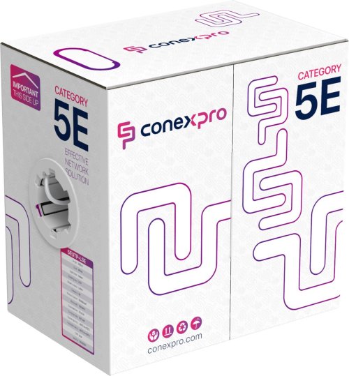 Bezhalogenový UTP kabel kategorie 5E značky Conexpro využijete především pro vnitřní rozvody strukturované kabeláže. Vodiče z kvalitního hliníkového drátu potaženého vrstvou mědi o průřezu AWG24 jsou chráněné pláštěm z LSZH. Kabel vám zajistí přenos dat rychlostí až 1 Gbps (1000 Base-T). Není stíněný, což ovlivňuje jeho vodivost a zároveň vylučuje použití pro POE instalace.