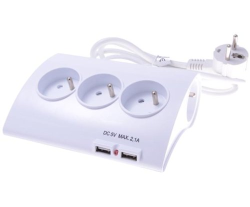 "Prodlužka" pro 5 zásuvek a 2 USB
