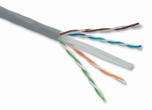 kvalitní nestíněný kabel UTP, kategorie 6, s typem pláště PVC. Vodiče