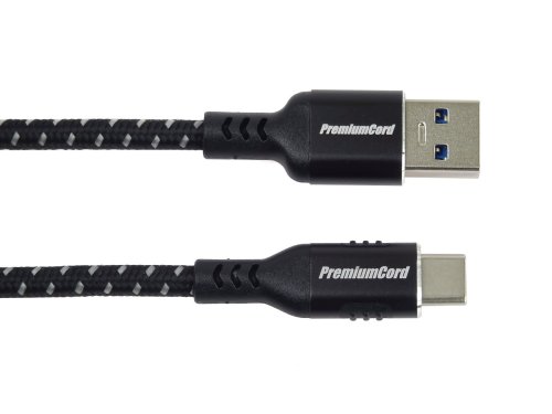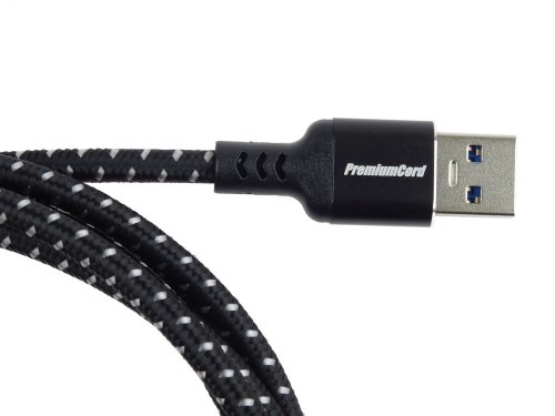 PremiumCord kabel USB-C - USB 3.0 A (USB 3.2 generation 1, 3A, 5Gbit/s) 1,5m bavlněný oplet a kovové hliníkové konektory