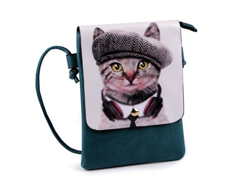 Kabelka malá kočka, květ, jednorožec, jelen, kůň 15,5x21 cm - modrozelená kočka