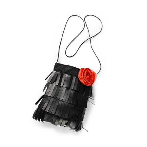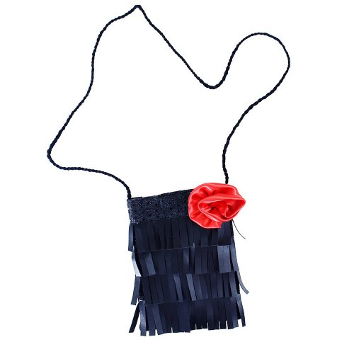 Stylová černá taška zdobená rudou saténovou růží. Taška má rozměr 15 x 21 cm, délka ucha cca 55 cm. Perfektní doplněk na párty!