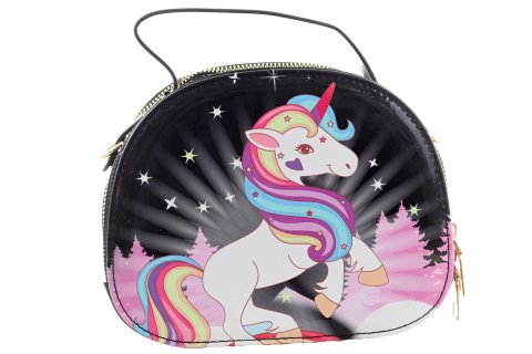 Kabelka s motivem jednorožce. Lesklý materiál. Zapínání na zip - kabelka má jednu velkou kapsu. Rozměry kabelky 19x15x7,5 cm. Výrobek není hračka.