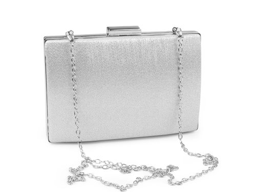 Malá společenská kabelka působí luxusně. Její jemně strukturovaný povrch se jemně třpytí. Zdobí ji výrazné lesklé zapínání a rámeček po celém obvodu v barvě kabelky. Kabelka je pevně vyztužená, její součástí je dlouhý odnímatelný řetízek na karabiny. Můžete ji nosit v ruce nebo jako crossbody přes rameno či do kříže. Kabelka č.3 (off white) má jemný duhový AB efekt