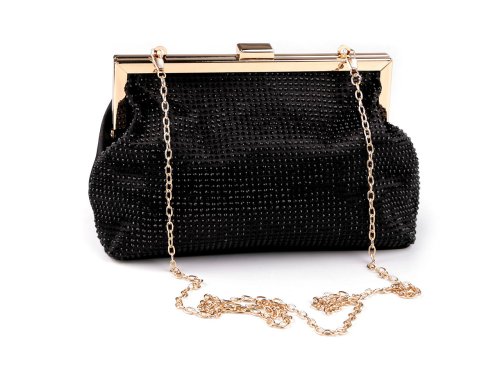 Luxusní společenská kabelka bude skvělým doplňkem vašeho slavnostního outfitu. Její saténový povrch se třpytí, celou přední stranu má ozdobenou drobnými broušenými kamínky, kabelka je nepřehlédnutelná. Má lesklý kovový rámeček se zapínáním, uvnitř najdete malou kapsičku na drobnosti. Součástí kabelky je i dlouhý odnímatelný řetízek na karabiny. Můžete ji nosit v ruce nebo jako crossbody přes rameno či do kříže.