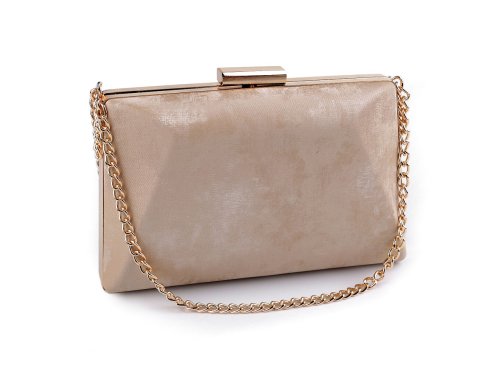 Luxusní společenská kabelka bude pravým doplňkem vašeho slavnostního outfitu. Její povrch má zajímavou semišovou strukturu. Zdobí ji ucha v podobě řetízků a lesklé kovové zapínání, po celém obvodu je kovový rámeček. Kabelka je pevně vyztužená, její součástí je i dlouhý odnímatelný řetízek na karabiny. Můžete ji nosit v ruce, za řetízková ucha nebo jako crossbody přes rameno či do kříže.
