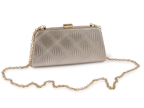 Malá společenská kabelka vyzařuje eleganci a luxus, má zajímavou lesklou povrchovou strukturu, efektně se třpytí. Zdobí ji výrazné lesklé zapínání a rámeček po celém obvodu. Kabelka je pevně vyztužená, její součástí je dlouhý odnímatelný řetízek na karabiny. Můžete ji nosit v ruce nebo jako crossbody přes rameno či do kříže.