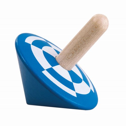 Dřevěná točící káča v modré barvě pomáhá rozvíjet jemnou motoriku prstů.