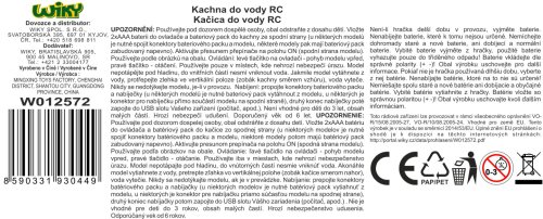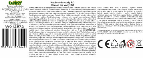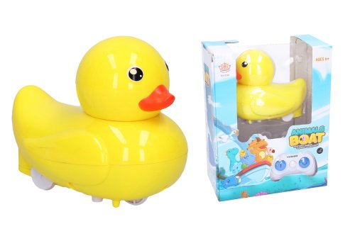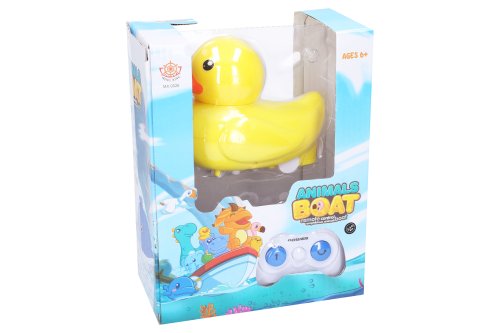 Kachnička do vody RC na dálkové ovládání. Velikost 14 cm. Na ovladači jsou 2 tlačítka (vpřed, zatáčení). Vysoušení - otočit vertikálně zobákem nahoru, jemně třepat. USB nabíjecí kabel. Frekvence 2,4 GHz. Kachna - 3.7V bateriový pack (součástí), ovladač - 2xAAA (není součástí).