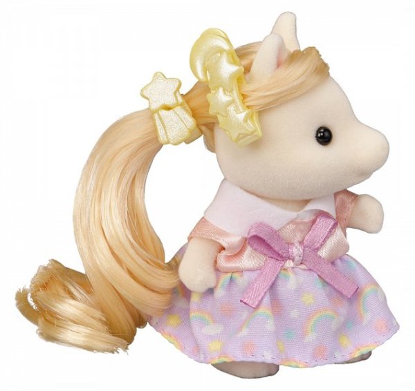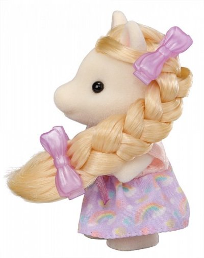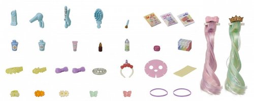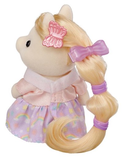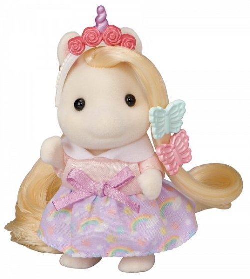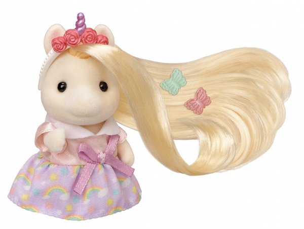 Sada Kadeřnický salón pro poníky obsahuje nádherný kadeřnický salon a hedvábnou poníkovou dívku Sally. Zahrnuje doplňky pro hru na vlasy a make-up. Za pomoci vlasových doplňků a knihy o vlasovém stylingu upravte vlasy dívky Sally různými způsoby. Tato sada obsahuje budovu, nábytek, figurku a doplňky a lze ji užívat samostatně. Součástí je krásná komoda s velkým zrcadlem. Dvoupatrový salon otevírá tolik zábavných způsobů, jak hrát! Učešte vlasy kartáčem nebo použijte kulmu pro zábavnou hru se stylingem vlasů! Figurky mohou držet vysoušeč vlasů. Kombinujte různé vlasové doplňky, jako je pásek Alice a sponky do vlasů, abyste vytvořili různé účesy! Na toaletním stolku vystavte vlasové doplňky, kartáč a fén. Figurku lze připevnit k židli při zaplétání vlasů nebo vytváření jiných účesů. Umyvadlo a židli ve tvaru mušle použijte ke hře na mytí vlasů. Sprchovou hlavici lze připevnit na boční stranu umyvadla. Zkombinujte se sadou Poník s vlasy v kadeřnictví (prodává se samostatně) pro ještě více zábavy se salonem! Nebo zkombinujte se sadou Šaty a ozdoby pro princezny s kotětem (prodává se samostatně) a proměňte horní patro kadeřnictví v obchod s šaty. Přiložené prodloužení vlasů lze také připevnit k dalším figurkám (prodávají se samostatně). Stimuluje nápadité hraní rolí u dětí. Věk: 3+