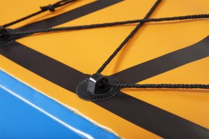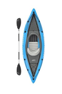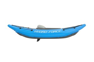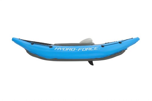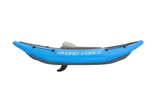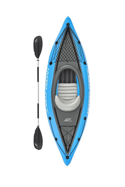 Kajak Hydro Force™ Cove Champion™ X1 je ideální volbou pro pohodové vodní dobrodružství na jezeře, řece i moři. Tento jednomístný nafukovací kajak se snadno a rychle připraví k použití. Tři vzduchové komory zvyšují bezpečnost a stabilitu, zatímco promyšlený tvar a uzavřený kokpit minimalizuje pronikání vody dovnitř a zlepšuje celkový zážitek z jízdy. Odolný materiál Inflata-Shield™ zajišťuje vyšší pevnost, omezuje nadměrné roztahování a zvyšuje odolnost proti poškození. Komfortní kokpit je vybaven nastavitelným nafukovacím sedadlem s opěrkou zad pro pohodlnou jízdu. Praktický úložný prostor se síťkou poskytuje dostatek místa na drobnosti a vybavení. Certifikace GS od TÜV SÜD potvrzuje splnění vysokých bezpečnostních standardů pro bezstarostnou zábavu na vodě. Nechybí ani odnímatelné ploutve pro lepší směrovou stabilitu, madla pro snadné přenášení a ventily pro rychlé nafouknutí i vyfouknutí. Součástí balení je 230 cm hliníkové pádlo, ruční pumpa Air Hammer™, transportní taška a opravná sada – vše, co potřebujete pro okamžité vyplutí. Pro 1 osobu. Maximální nosnost 120 kg. Rozměry v nafouknutém stavu: 45 x 81 x 275 cm. Rozměry ve vyfouknutém stavu:102 x 275 cm. Rozměry balení: 58 x 39 x 21 cm.