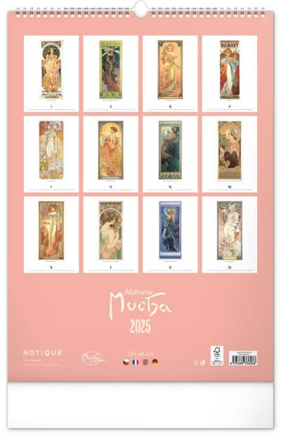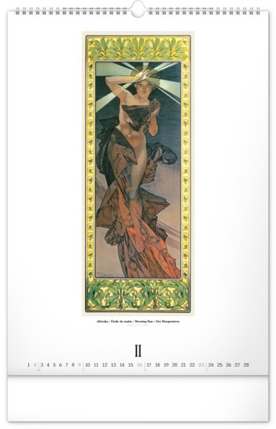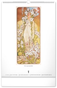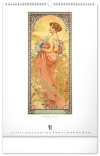 Česko-slovenský nástěnný kalendář ve velkém formátu s obrazy oblíbeného secesního malíře českého původu.