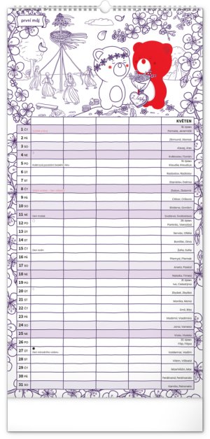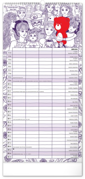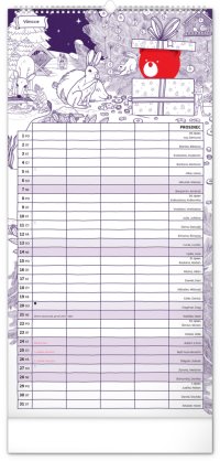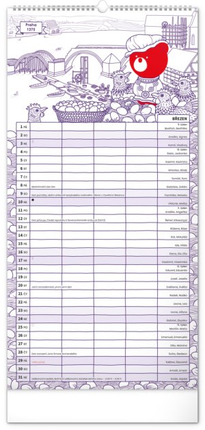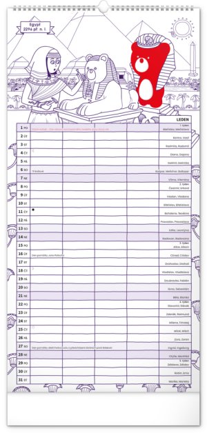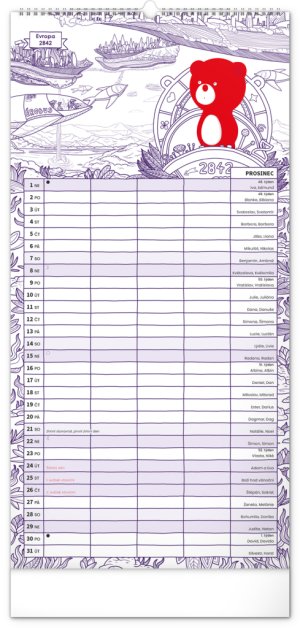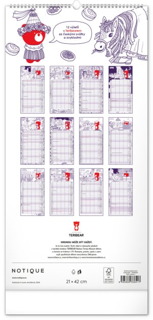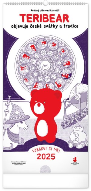 Kalendář 2025 nástěnný: Rodinný, plánovací TERIBEAR, 21 × 42 cm