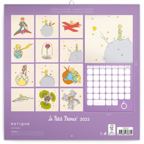 „To důležité vidíme srdcem!“ Příběh o Malém princi nás učí vidět ve věcech a lidech víc než jen povrch a zajímat se o svět kolem i uvnitř nás. Ilustrace ze známé knížky francouzského spisovatele a ilustrátora Antoina de Saint-Exupéryho doplňuje přehledné kalendárium od září 2024 do prosince 2025 ve čtyřech jazycích, fáze měsíce, důležité svátky a prostor pro poznámky na každý den.