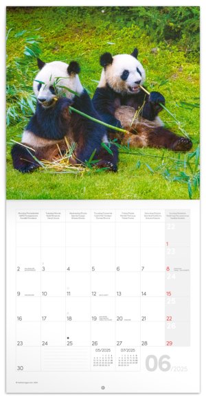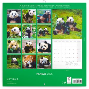 Kalendář 2025 poznámkový: Pandy, 30 × 30 cm