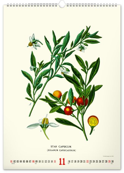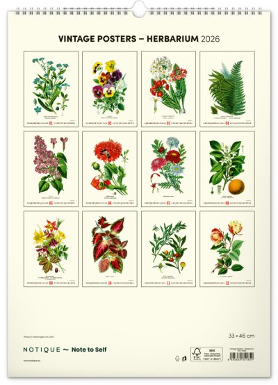 Nástěnný kalendář s pečlivě vybranými klasickými plakáty rostlin z herbáře. Propracované detaily a živé barvy lze obdivovat na velkém formátu kalendáře s vysokou gramáží papíru.