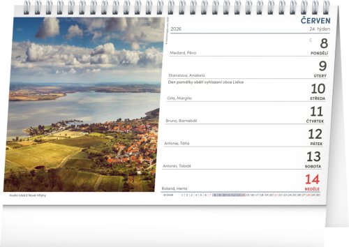 Romantická i málo známá zákoutí Čech a Moravy na stránkách praktického stolního kalendáře, který může posloužit také jako zdroj inspirace pro vaše výlety. Kalendář obsahuje české kalendárium s českými jmény, svátky, významnými dny a přehled na rok 2026 a 2027.