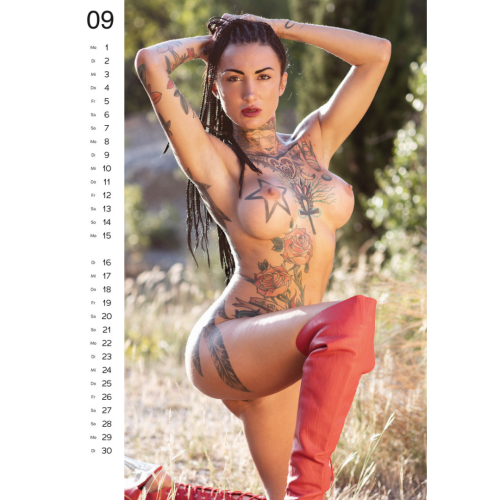 Barevný nástěnný kalendář pro rok 2026 s potetovanými těly sexy žen
