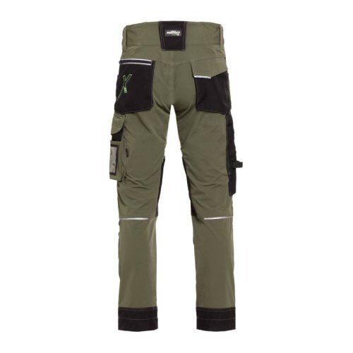 Vysoce odolné a funkční kalhoty z elastického softshellového materiálu s aktivním pasem pro pohodlí při dlouhé práci. Ventilační zipy odvádějí vlhkost a teplo, trojité švy, klínek v rozkroku a reflexní prvky zajišťují bezpečnost a odolnost. Mnoho praktických kapes z materiálu CORDURA pro nářadí, dokumenty i kolenní vložky. Spodní část nohavic je zesílená a nohavice lze prodloužit o 4 cm pro vyšší uživatele.