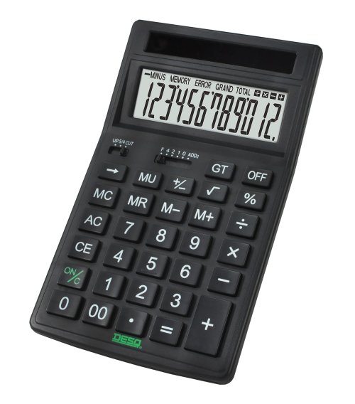 - Stolní kalkulačka na solární energii - 12ti místný LCD displej - Funkce MU, GT, Backspace, tlačítko s dvojitou nulou, tlačítko (+/-) - Nastavení zaokrouhlování a desetinných míst - Tlačítka pro výpočet …