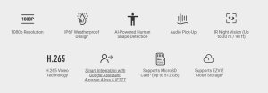 AI algoritmus kamery rozpoznává lidské postavy a eliminuje plané poplachy způsobené například pohybem stromů, deštěm či hmyzem. Notifikace tak přicházejí jen při skutečném narušení. Kvalitní IR přísvit umožňuje sledovat prostor i v úplné tmě do vzdálenosti až 30 metrů.