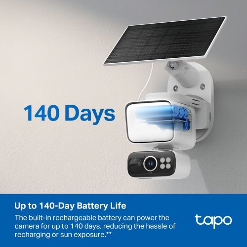Zapomeňte na složité vedení kabelů. Kamera Tapo C615F KIT funguje zcela bezdrátově díky vestavěné baterii a solárnímu panelu Tapo A201. Ten zajistí nepřetržité napájení, a to i při zhoršených světelných podmínkách. Kameru a panel lze nainstalovat samostatně a propojit 4metrovým kabelem pro ideální umístění vzhledem ke slunečnímu svitu.