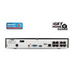 Kamerový systém iGET HOMEGUARD HGNVK85304 s PoE napájením a SMART detekcí pohybu, 8-kanálový FullHD rekordér NVR s PoE napájením + 4x HGNVK930CAM FullHD 1080p PoE barevná venkovní kamera, podpora OnViF, v balení myš a kabeláž, pozice pro 1x HDD SATA, LAN, USB, VGA, HDMI.