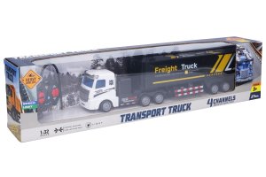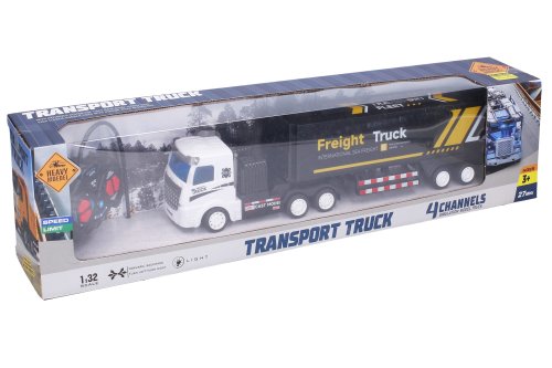 Kamion RC na dálkové ovládání. Rozměry 41x11,5x6,5 cm. Frekvence 27 MHz. Světelné efekty. 3.7V bateriový pack do kamionu součástí, 2xAA do ovladače není součástí. USB kabel součástí. Přepínač ON/OFF na spodní straně kamionu.