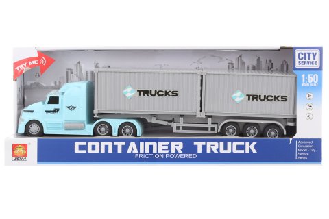 Kamion s kontejnery na baterie. Po stisknutí tlačítek kamion vydává zvuky a svítí. Rozměry kamionu cca 36 x 9 x 6 cm. Rozměry balení cca 39 x 15 x 7,5 cm. Napájení na 3 AG13 (jsou součástí balení). Věk 3+