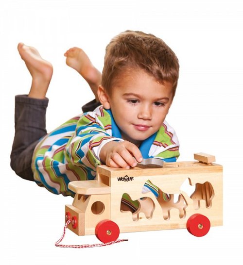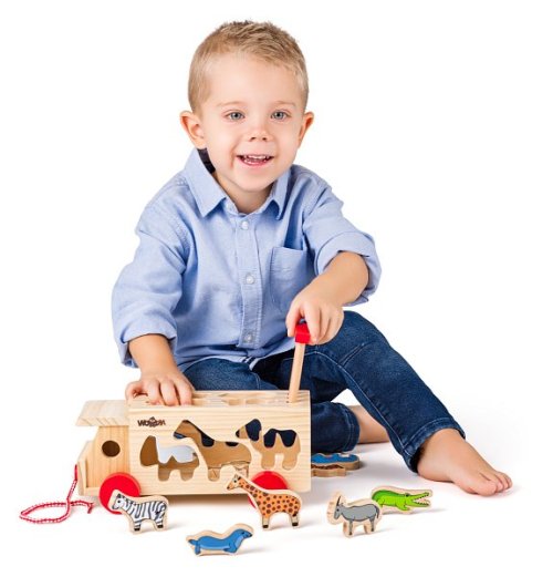 Vkládací kamion se zvířátky učí dítě znát tvary zvířátek a vkládat je do patřičných otvorů. Hračka je i určena pro rozvoj motoriky. Obsahuje provázek na tahání. V roce 2015 se firma Olymptoy stala patronem projektu „Jedeme v tom spolu“. Tento projekt má za úkol podporovat výuku dětí ze základní školy Jedličkova ústavu. Mnoho dětí, které tuto školu navštěvuje se denně potýká s problémy, které pramení z nedostatku finančních prostředků umožňujících jim kvalitní výuku. Často není vůbec možné bez nákupu dané kompenzační pomůcky dítě do výuky začlenit. Společný projekt firmy Olymptoy a Nadace Jedličkova ústavu „Jedeme v tom spolu“ začíná již nyní shromažďovat potřebné prostředky a postupně tak vybavovat žáky těmito nezbytnými pomůckami. Vybrali jsme těchto 11 produktů z řady Woody, které jsou označeny samolepkou s logem „Nadace Jedličkova ústavu“. Z každé prodané hračky, označené logem „Nadace Jedličkova ústavu“, odchází na konto tohoto projektu částka 5,- Kč.