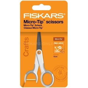 Nůžky Fiskars Non-Stick Micro-Tip™ mají přesný fazetový výbrus špiček čepelí umožňuje složité a přesné střihy. br Jsou ieální i pro střihání lepivých materiálů - čepele mají nepřilnavý povrch, který …