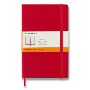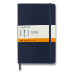Zápisník s měkkou, ve hřbetu šitou vazbou v kartonových deskách, obepnutý pružnou páskou proti samovolnému otevírání.