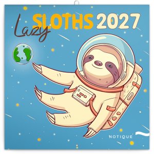 Poznámkový kalendář s roztomilými obrázky relaxujících lenochodů a trefným veselým popiskem pro každý měsíc.