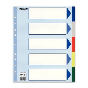 Kartonový bílý rozlišovač s vyztuženou univerzální perforací a barevnými rozlišovacími okraji vyztuženými fólií.