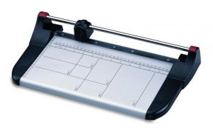Jednoduchá kancelářská kotoučová řezačka papíru s vyztuženou plastovou základnou a řeznou hlavou umístěnou na profilové kovové tyči. Řezačka umožňuje řezání 8 listů papíru (70g/m2) v max. délce 320 …
