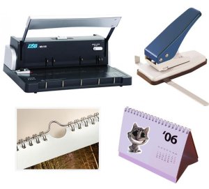 Bílá kancelářská sestava určená pro vazbu až 100 ks kalendářů.