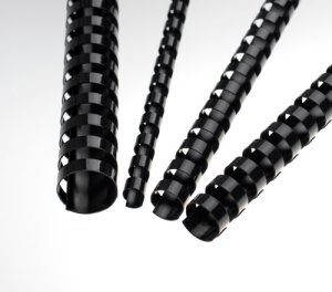 plastový hřbet pro vazbu dokumentů průměr 6 mm kapacita 11 – 20 listů 80 g/m2 formát A4 21 otvorů barva černá balení 100 ks