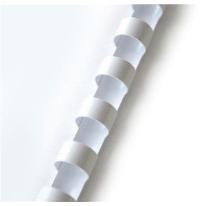 plastový hřbet pro vazbu dokumentů průměr 19 mm kapacita 121 – 150 listů 80 g/m2 formát A4 21 otvorů barva bílá balení 100 ks
