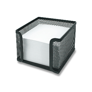 Kovový stojánek na poznámkový bloček, rozměr: 105 x 95 x 105 mm.