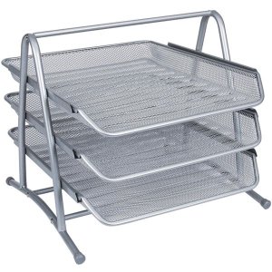 Trojdílný odkladač na dokumenty do formátu A4 Rozměry: 278 x 275 x 350 mm Barva: stříbrná