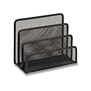 Kovový organizér na dopisy a psací potřeby v černé barvě.