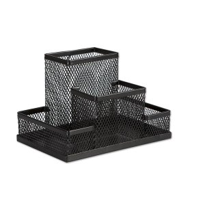 Drátěný organizér na pracovní stůl do každé kanceláře 3 oddělené přihrádky na psací potřeby, sponky a poznámkové bločky Barva: černá