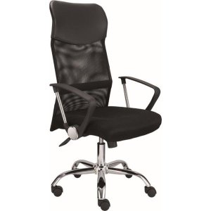 Kancelářská židle s vysokým prodyšným opěrákem Houpací mechanismus s aretací v základní poloze Nastavení síly protiváhy podle tělesné hmotnosti uživatele Provedení: černá síťovina na opěráku a černá …