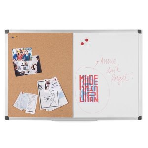 Kombinace korkové a bílé lakované magnetické tabule Hliníkový rám zajistí dlouhou životnost Součástí je polička na popisovače Dodáváme s montážními prvky Na tabule a flipcharty piště výhradně popisovači …