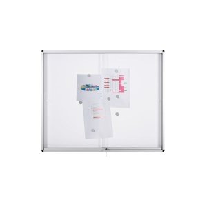 Vitrína pro prezentaci dokumentů, vhodná do interiéru, uzamykatelná Tvrzené bezpečnostní sklo, posuvná dvířka Bílá magnetická zadní stěna Dodáváme včetně montážní sady a dvou klíčů Rozměry: vnitřní 92,6 …