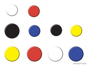Magnet 851/13 mm mix barev (14 ks). průměr: 13 mm mix barev: žlutá, modrá, červená, zelenáí, bílá, černá - prodává se pouze na celá balení balení: 14 ks Barevný magnet 851/13 je vhodný na nástěnky, flipcharty …