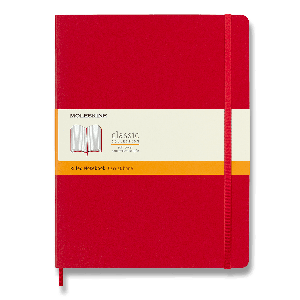 Zápisník s měkkou, ve hřbetu šitou vazbou v kartonových deskách, obepnutý pružnou páskou proti samovolnému otevírání.